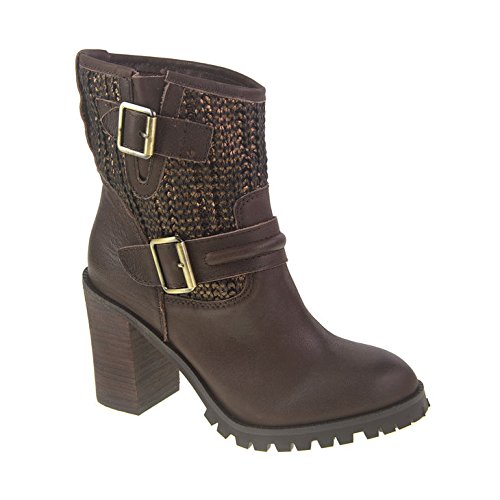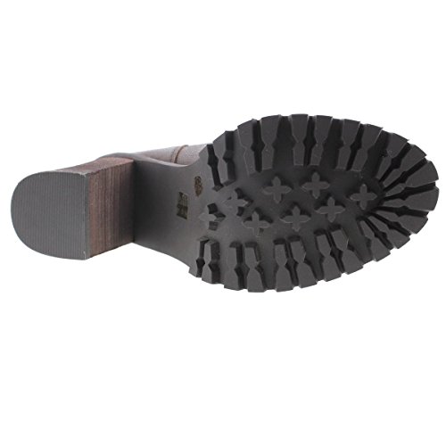 Product DescriptionLug sole two toned bootie with chunky heel and buckle detail0