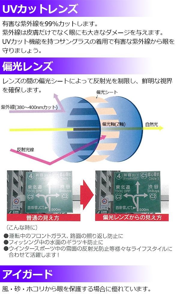 | レンズサイドをしっかりとカバーし、圧迫感のないゆったり構造です。サイドには視野を挟めない危険防止レンズ付!!紫外線から眼を守るだけでなく、風・砂・ホコリから保護する場合にも優れています。 |