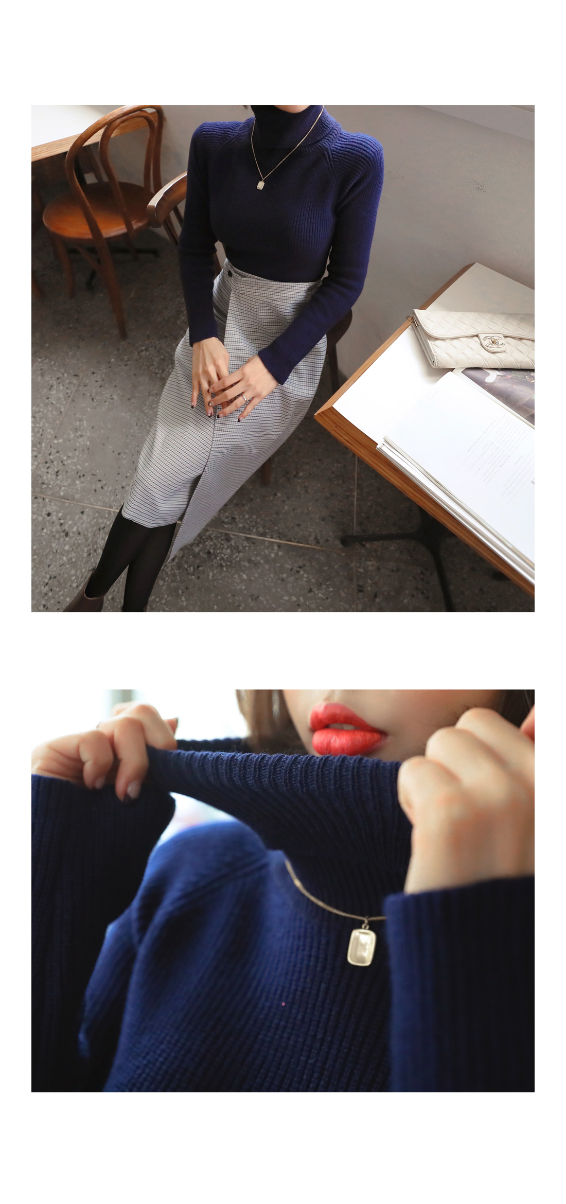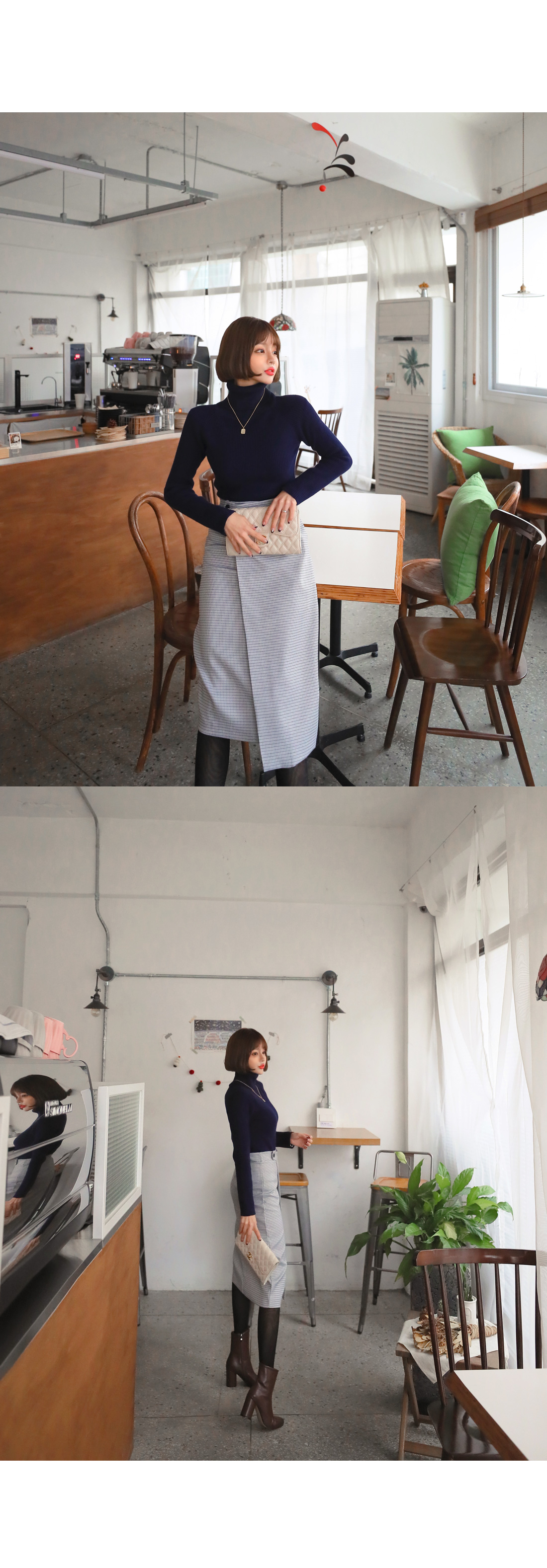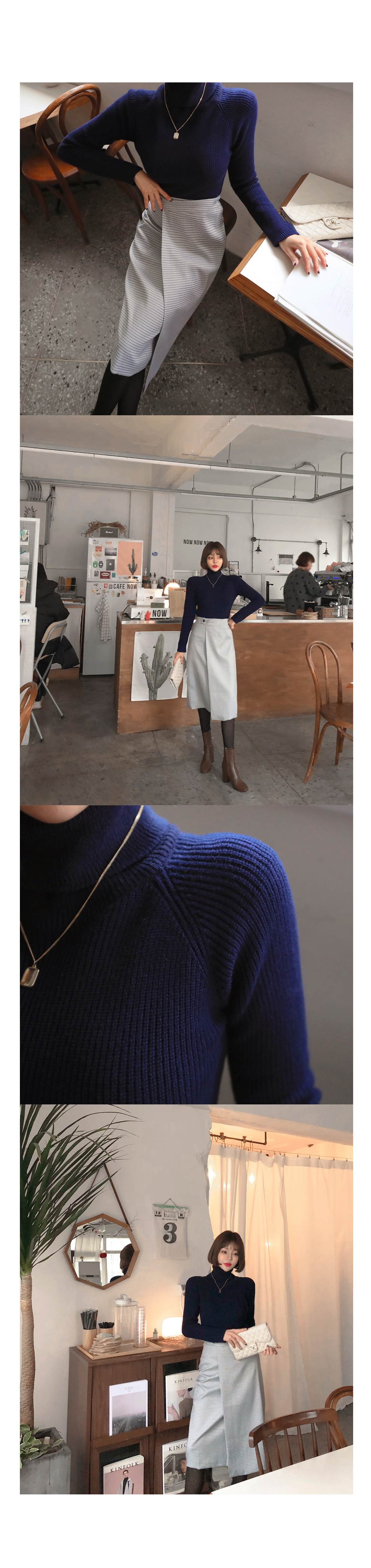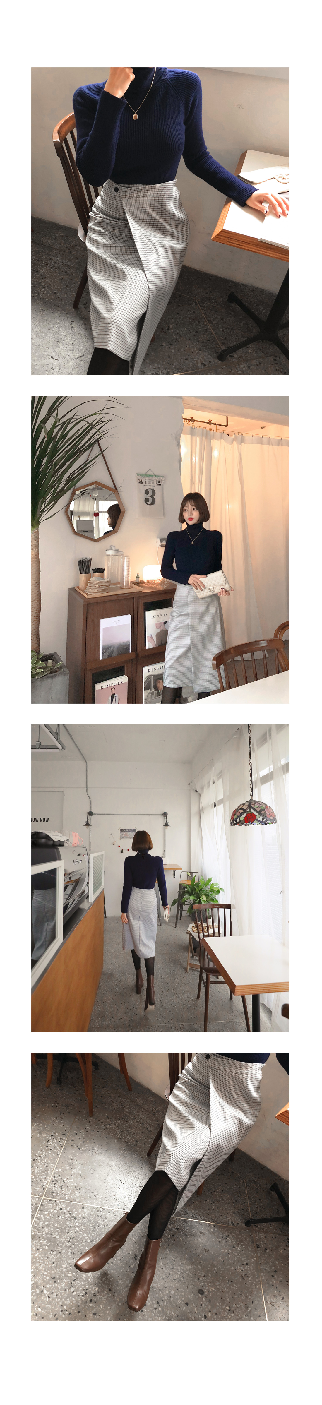 MD COMMENT 활용도 높은 SET 아이템을 소개해드릴게요-!치마와 폴라니트가 세트인 상품으로따로 코디 걱정없이 입을 수 있는 제품이에요단품으로도 코디 가능한 상품으로 활용도가 높은데요 롱한 기장감의 미디 스커트로 체형커버 효과를 주면서군더더기 없이 깔끔하게 떨어지는 라인이고급스러운 느낌을 준답니다 -랩스커트 모양으로 나온 디자인으로 포인트를 주면서 뒷지퍼가 편안한 피팅을 도와줘요체크패턴이 은은한 느낌을 주면서 목을 감싸주는 하이넥이 포근한 느낌을 준답니다 코디에 따라 펴서-접어서 연출 가능한 넥높이구요 짱짱한 신축성으로 활동하는데 불편함이 없어요슬림한 바디라인을 연출해주면서 세트상품으로 하나만 입어줘도 좋지만 자켓이나 코트와함께 매칭해서 입어주면 더욱 고급스러운 연출이 가능한 아이템이랍니다-!오피스룩 파티룩등 활용가능하니소장추천 드리며 얼른 초이스하세요!:)COLOR/SIZE 네이비S,MMODEL FITTING 네이비/S