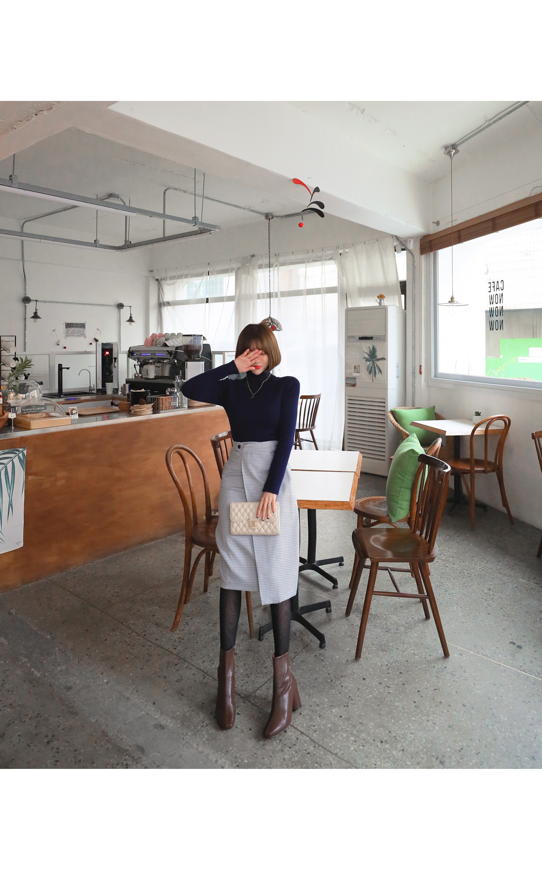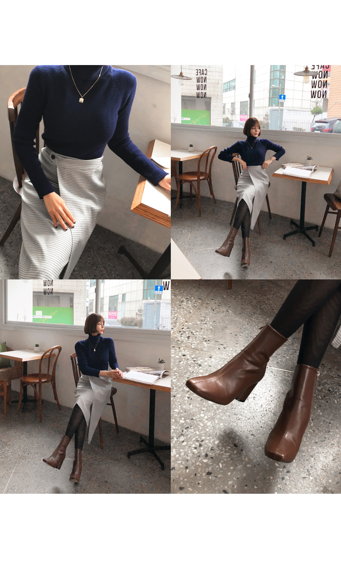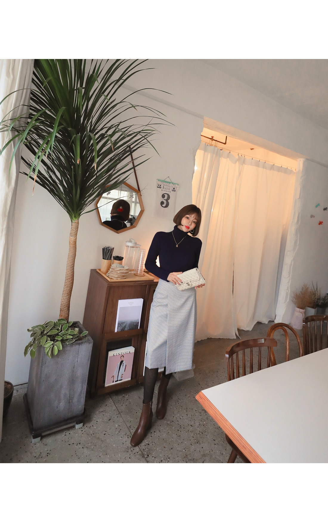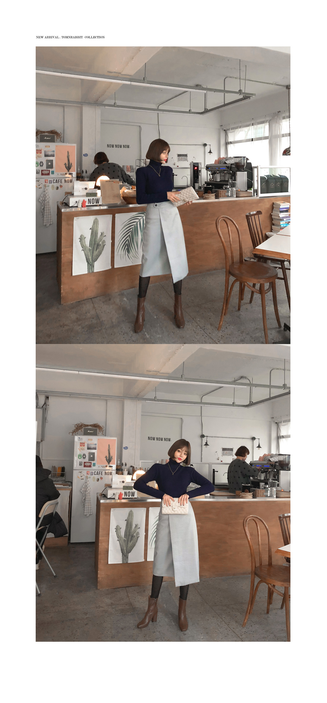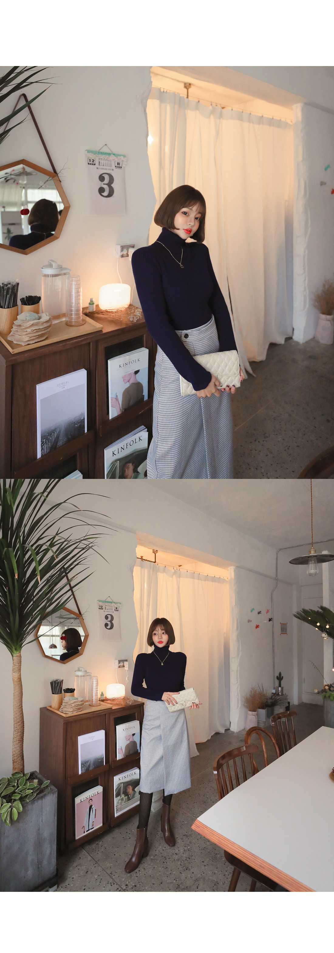 MD COMMENT 활용도 높은 SET 아이템을 소개해드릴게요-!치마와 폴라니트가 세트인 상품으로따로 코디 걱정없이 입을 수 있는 제품이에요단품으로도 코디 가능한 상품으로 활용도가 높은데요 롱한 기장감의 미디 스커트로 체형커버 효과를 주면서군더더기 없이 깔끔하게 떨어지는 라인이고급스러운 느낌을 준답니다 -랩스커트 모양으로 나온 디자인으로 포인트를 주면서 뒷지퍼가 편안한 피팅을 도와줘요체크패턴이 은은한 느낌을 주면서 목을 감싸주는 하이넥이 포근한 느낌을 준답니다 코디에 따라 펴서-접어서 연출 가능한 넥높이구요 짱짱한 신축성으로 활동하는데 불편함이 없어요슬림한 바디라인을 연출해주면서 세트상품으로 하나만 입어줘도 좋지만 자켓이나 코트와함께 매칭해서 입어주면 더욱 고급스러운 연출이 가능한 아이템이랍니다-!오피스룩 파티룩등 활용가능하니소장추천 드리며 얼른 초이스하세요!:)COLOR/SIZE 네이비S,MMODEL FITTING 네이비/S