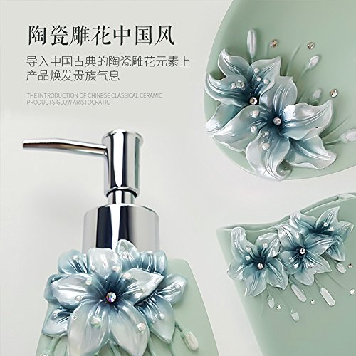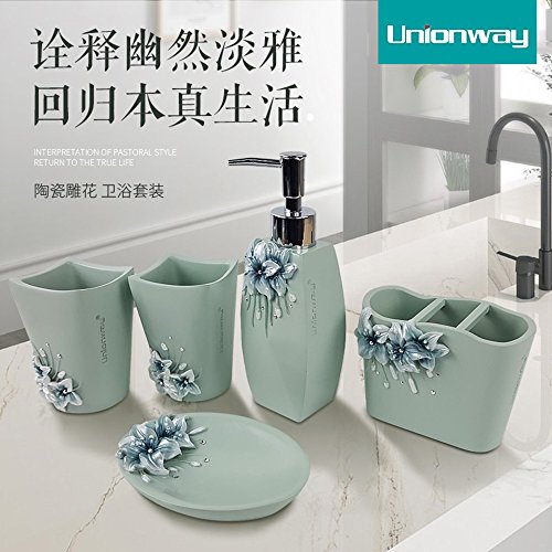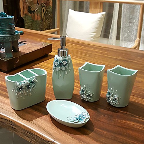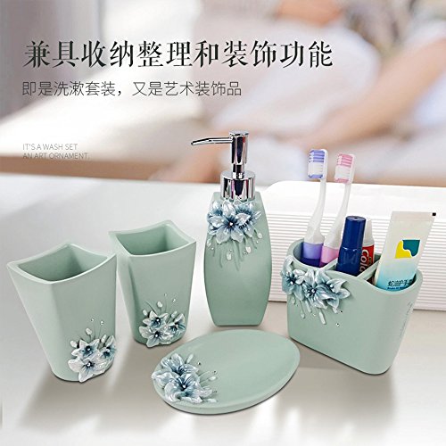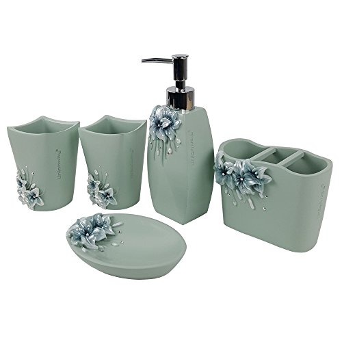 Unionway Home Fashions 5-Piece Resin Bath Accessory Set,Lake Green