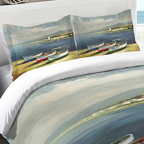 Studio : Generic Publisher : Generic Product Description Crafted from 100-percent cotton, this 300 thread count sham is serene and stylish. The sham features a digitally printed picture of three boats, displayed in crisp, vibrant colors. This sham will add comfort and style to your bedroom. Thread Count: 300 TC Material: Cotton Pattern: Nature, Lodge Care Instruction: Machine Wash Set Include: 1 Piece Size: Standard Sham Color: Blue Dimensions: 20 inches wide x 26 inches long The digital images we display have the most accurate color possible. However, due to differences in computer monitors, we cannot be responsible for variations in color between the actual product and your screen. 0