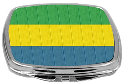 Rikki Knight Compact Mirror on Distressed Wood Design, Gabon Flag, 3 Ounce