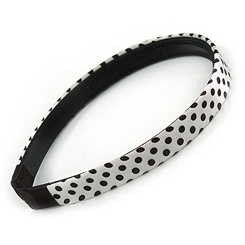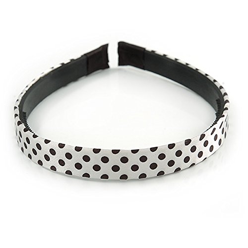 Studio : Avalaya Publisher : Avalaya Binding : Jewelry Product Description Complete your look in style with this cute White/ Black Silk Polka Dot Alice/ Hair Band/ HeadBand. Featuring a medium headband, decorated with Polka Dot pattern silk fabric in hues of white and black The band has about 11cm Diameter and 12mm W. Style this band with party wear and day wear for subtle glamour. 0