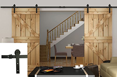 EWEI'S Homewares Steel Double Sliding Barn Wood Door Hardware Kit, 13 Feet - Antique Black