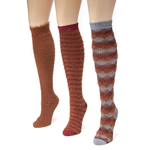 Muk Luks Women's 3 Pair Pack Fuzzy Yarn Knee High Socks