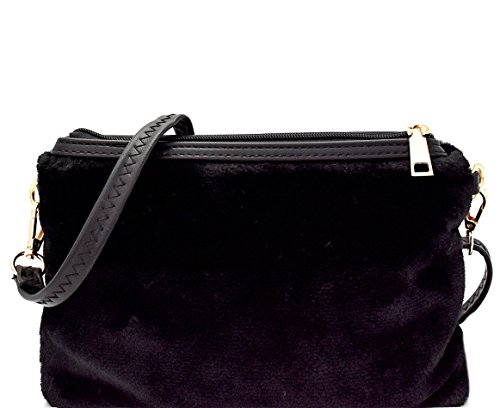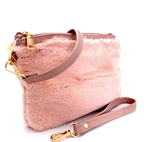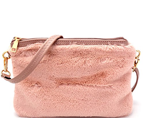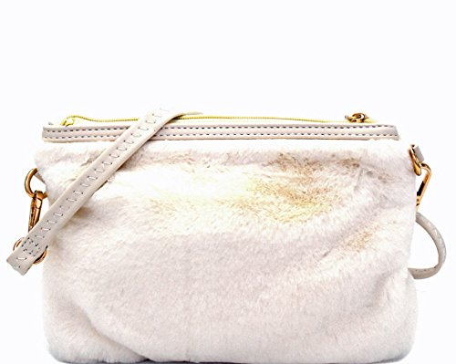 Product Description New Le Miel's Uninvolved, Faux Fur 12" x 8" Crossbody Wristlet Dimensions - 12 L x 1 W x 8"H Wrist strap and shoulder strap included Faux-fur and faux-leather material Gold-tone hardware Interior - 1 zip pocket Closure - zipper 0