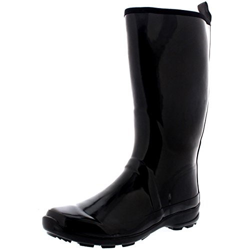 -. Title : Womens Contrast Sole Tall Rubber Gloss Winter Snow Rain Wellies Boots