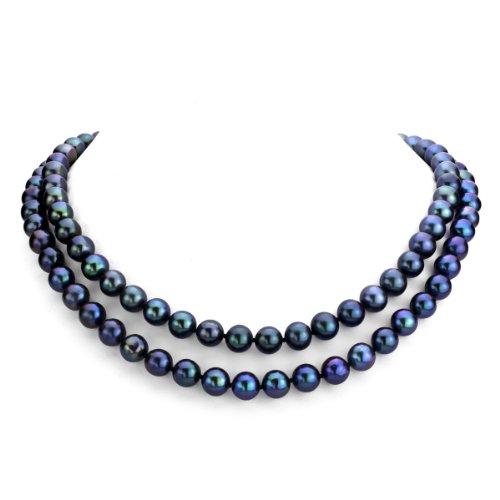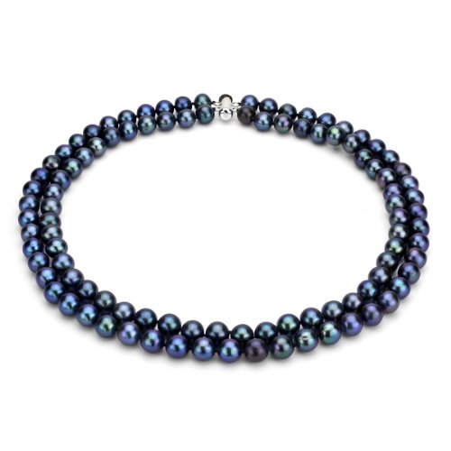 A Beautiful and Elegant Sterling Silver 2-rows Dyed-black Genuine Freshwater Cultured High Luster Pearl Necklace 17" Length. This necklace is hand-knotted, and secured with tube-clasp. We Carry Different Color of Pearls, Different Size Per Pearls, Different Length, Different Pearl Type, and Different Clasps. Please Contact Us for Detail if You Did not See What You Want.