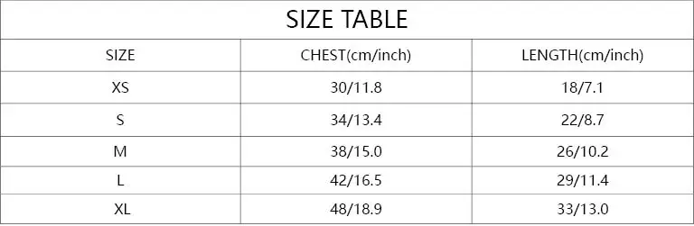Item Size:XS/S/M/L/XL