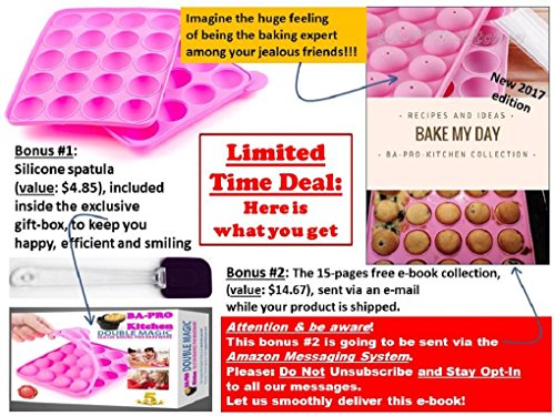 ✔ GET THE QUALITY YOU DESERVE WITH THIS ULTIMATE BAKEWARE SET: non-stick, 100% food grade, BPA free Silicone, Stain / Odor and Heat resistant (up to 450ºF), Safe to use in Dishwasher, Microwave, Steamer and Freezer, foldable to save storage space, base and lid are perfect fit. Compact size, 22.8 x 18.6 (L x W cm), 4cm ball diameter, 20 Uniform cake-pops-maker and smooth pastry removal mold, comes with 2 free bonuses.