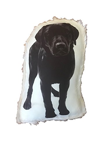 Dog Themed Decorative Accent Pillow with Fur Trim, Black Labrador, Approx 14" x 8".
