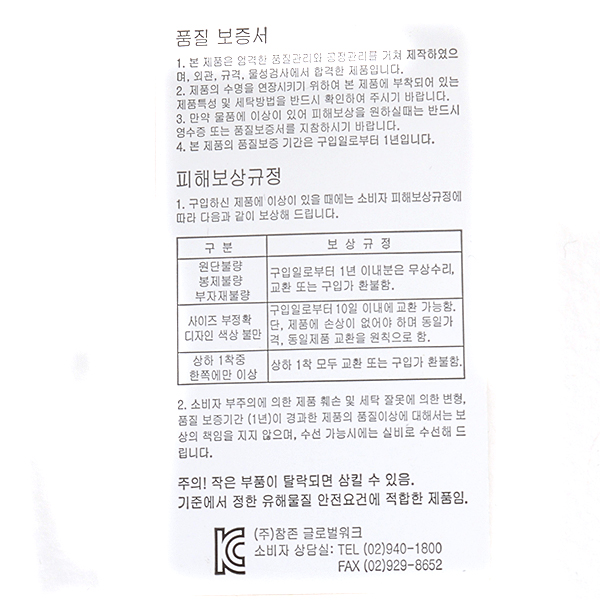 A/S 책임자와 전화번호 : AS 및 기타 문의 사항은 해당 매장 [최경임,053-255-6532] 으로 전화주시면 감사하겠습니다.