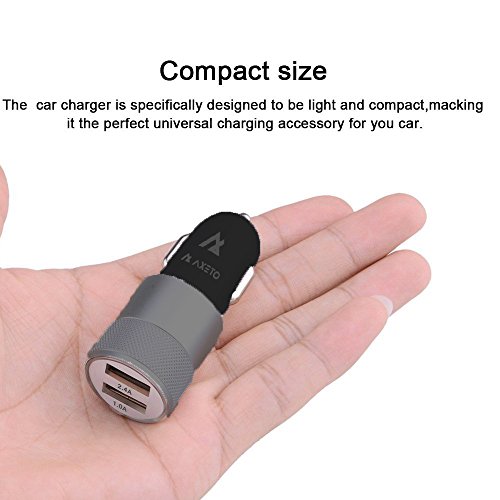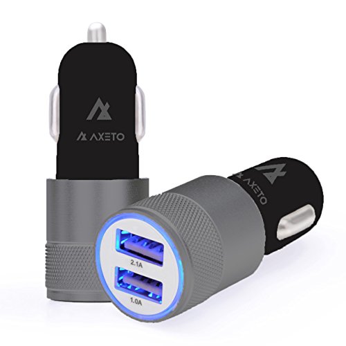 Axeto Car Charger , Dual Port 3.1A USB Car Charger Adapter for Apple iPhone 7/7 Plus 6/6plus , Apple iPad 4/3/2/Mini/Air/2, Apple iPod, Samsung Galaxy S6/S5 and other USB powered devices (Gray)