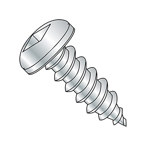 Steel Sheet Metal Screw, Zinc Plated, Pan Head, Square Drive, Type AB, #10-16 Thread Size, 1" Length (Pack of 100)