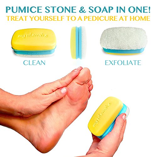My Solemate - 2 In 1 Pumice Sponge Exfoliating Foot Callus Remover And Moisturizing Soap Combination - For Smooth Soft Feet, Hands And Elbows