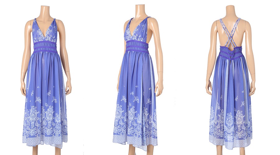 5. 블루 꼬부랑 화이트 나염 맥시원피스 [EBFL637021]