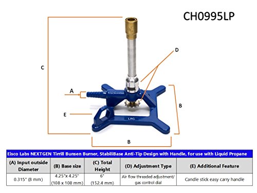 Liquid Propane Tirrill Bunsen Burner, StabiliBaseTM Anti-Tip Design with Handle, LP Eisco Labs