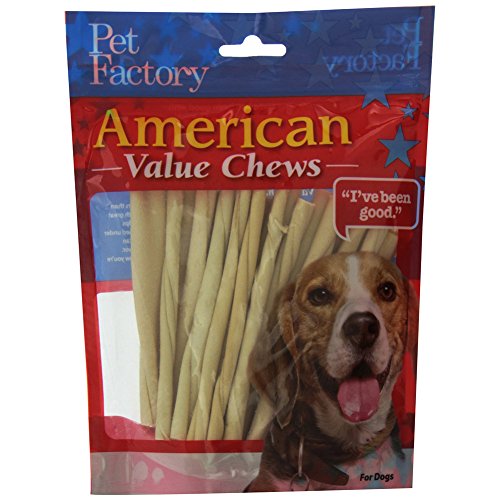 PET FACTORY 28054 American Beef-Hide Premium Twist Sticks, 5-Inch, 25-Pack