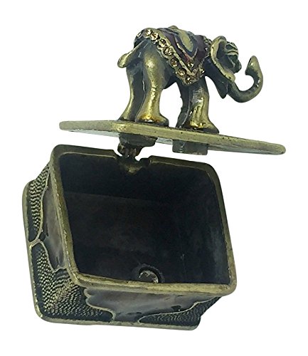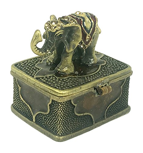 Lucky Elephant Mini Pewter Trinket / Jewelry Box by Welforth Brass Color with Crystals