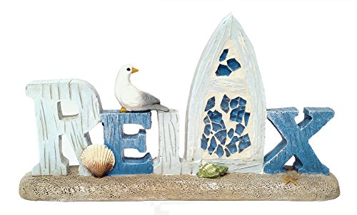 Coastal Beach Decor Table Top Word Sign with Seagull and Sea Shell Accents (Relax)
