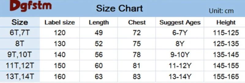 Size chart(unit:cm;1 cm=0.39 inches)