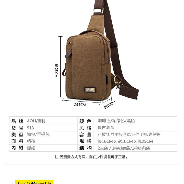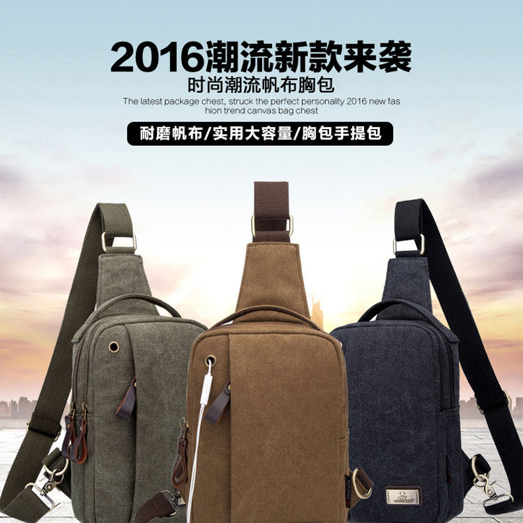 男士胸包休闲斜挎包男单肩包户外帆布包学生运动胸包男韩版潮胸包