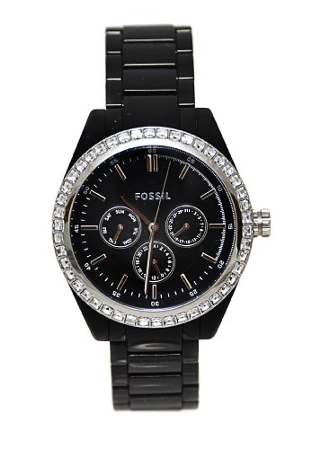 Fossil BQ1192 Chronograph Black Plastic Band Crystals Watch