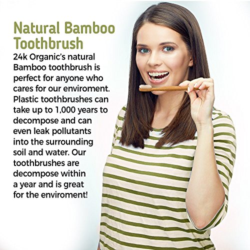 CREATE A SAFE WORLD TODAY: The hundreds of choices we make each day impact the environment. Sometimes it's a big decision....sometimes its as small as changing your toothbrush. 24K Organic strives to keep this world a better place! Plastic Toothbrushes can take hundreds of years to properly decompose 7 can even leak pollutants into the surrounding soil and water, causing animals to die each year. Our Natural Bamboo Toothbrush decomposes within a year, are BPA free, and cruelty free to animals. 24K strives to keep this world clean, healthy, & safe.