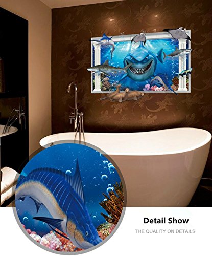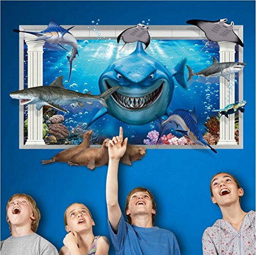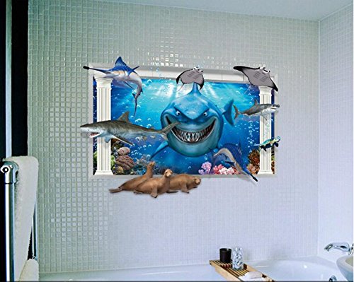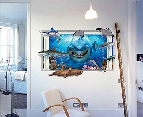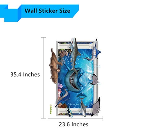 -. Title : Home Wing 3D window Sea World Shark Vivid Marine Animals PVC Art Wall Sticker Home Decor Mural, 23.6 X 35.4 Inches
