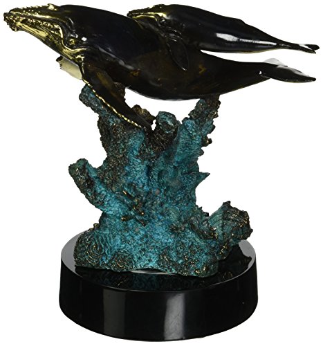 StealStreet SS-BA-E-D287 8" Bronze Mix Verdigris Parent & Child Whales Figurine Statue
