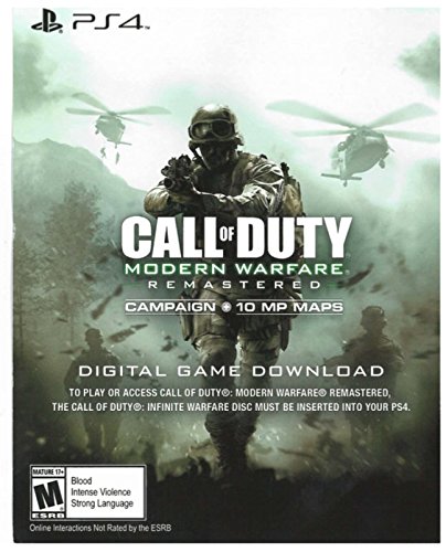 -. Feature : NOTE: Digital Game Download Voucher - Infinite Warfare Disc is REQUIRED for Modern Warfare Remastered gameplay. Sold separately. / Relive one of the most iconic campaigns in history, as you are transported around the globe. / Team up with your friends in the online mode that redefined Call of Duty by introducing killstreaks, XP, Prestige and more in customizable, classic multiplayer modes.