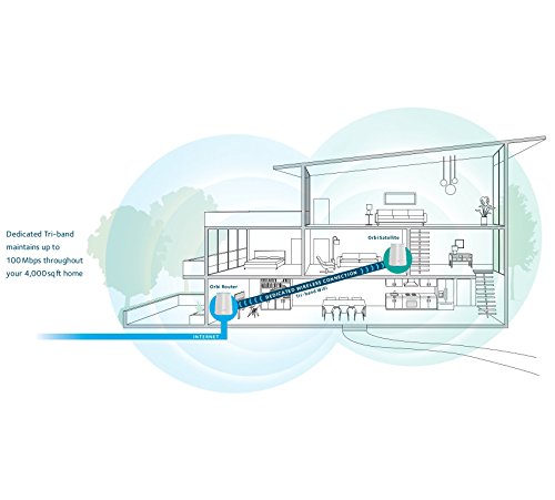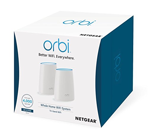 FAST WHOLE HOME SYSTEM Bring fast, secure, and reliable internet to your entire family with the NETGEAR Orbi Home WiFi System. No more WiFi boosters or extenders necessary. The Orbi WiFi Router and Satellite extend high performance WiFi to your property from the basement to the backyard. The system smartly manages your WiFi so that each device's access is optimized and never interrupted. Up to 4,000 SQUARE FEET OF COVERAGE From the home office to the basement to the pool, this wireless internet system covers every inch of your home with a strong WiFi signal. Unlike router and repeater combinations, Orbi covers the whole home with a single WiFi network and name, enabling seamless indoor/outdoor and room-to-room connectivity. TRI-BAND TECHNOLOGY Award winning and patented Tri-Band Technology provides Orbi with a dedicated backhaul connection between the router and the satellite, so the system can manage multiple network connections without compromising speed. Watch movies and TV, play video games, download music, books, and more. QUICK & EASY SETUP Selected as Editors’ Choice by PC Magazine, Orbi works with your current internet service provider and sets up in minutes right out of the box. Use the Orbi app or any web browser to create your entire home’s secure WiFi network in minutes. No personal info, account creation, or hands required with the new Amazon Echo Alexa skill and our intuitive and preconfigured system. GUEST CAPABILITY Allow guests the opportunity to access WiFi while protecting your network and password. Easily create a network to service visitors, and Orbi handles everything else. You'll rest easy knowing that your information is safe from security breaches, viruses, malware, and network worms. - NETGEAR Orbi AC2200 Home WiFi System - WiFi Router and Satellite Extender - High-Performance Tri-Band Technology - 4,000 Square Foot Range - RBK40Feature