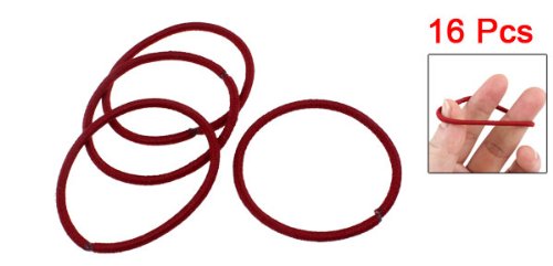 - Feature : Product Name : Hair Tie;Material : Rubber, Nylon / Color : Burgundy;Diameter (Not Stretch) : 4.5cm / 1.8" / Girth (Not Stretch) : 14cm/ 5.5" / Weight : 16g / Package Content : 16 x Hair Tie