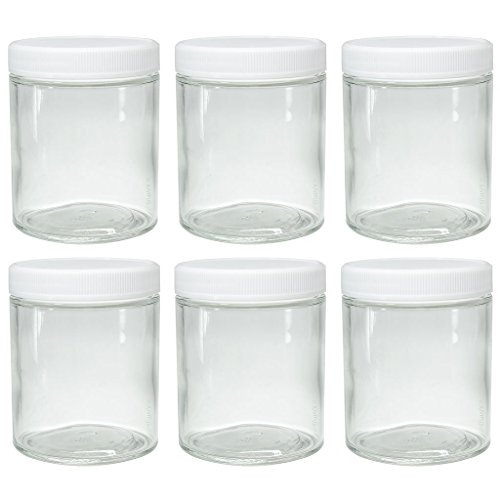 Clear Thick Plated Glass Straight Sided Jar - 6 oz / 180 ml (6 Pack) + Labels