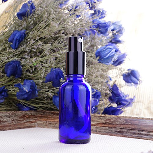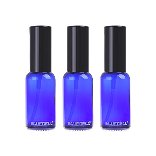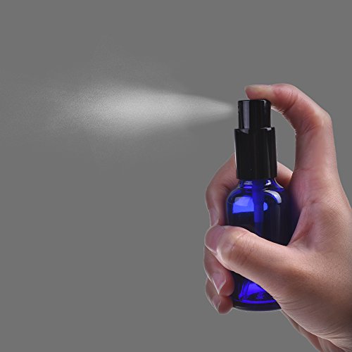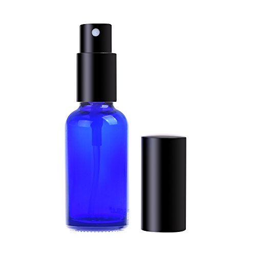BCP 3 PCS 1OZ Blue Color Glass Spray Bottle with Black Fine Mist Sprayers for Essential Oil Clean Product (1oz)