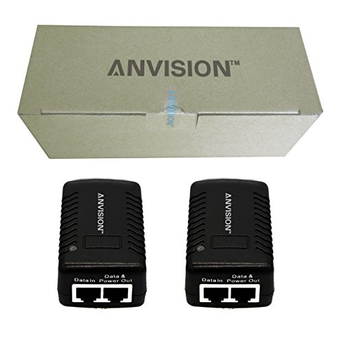 ANVISION 2-Pack 48V 0.5A Passive PoE Power Supply Injector Ethernet Adapter with Wall Plug IEEE 802.3af Compliant 10/100Mbps for IP Voip Phones, Cameras, AP and more