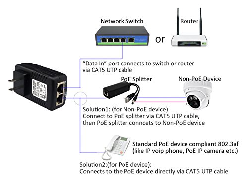 A great solution for poe devices and non-poe device(extra poe splitter will be required), the injector adapter can be used to power PoE devices(built-in poe function or module) such as IP Phone, IP cameras or Wireless Access Points etc.