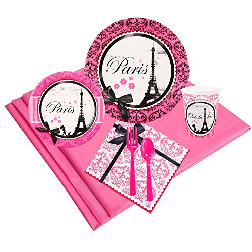 -. Feature : Includes (16) paper dinner plates, (16) paper dessert plates, (16) 9 oz. paper cups, (40) 2-ply paper lunch napkins, (16) sets of plastic forks and spoons, and (1) plastic tablecover. / Add matching tableware, favors, accessories, or a party kit bundle to complete your Paris birthday party!