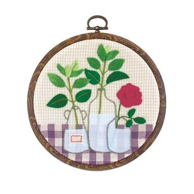 アップリケとししゅうで作るインテリア壁飾り。専用フープ付。技術レベルは初級~中級者向です。