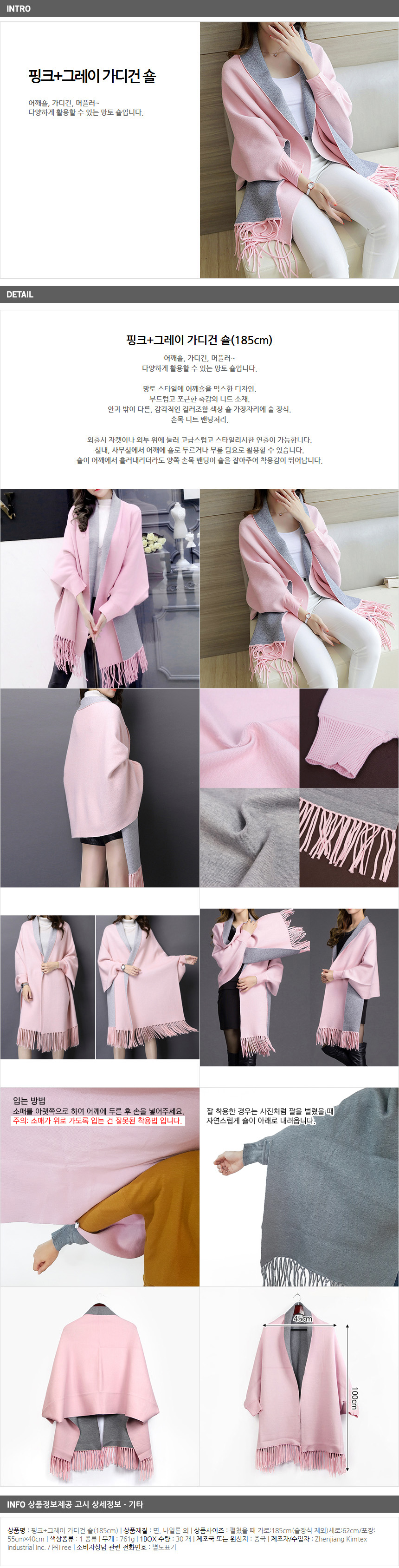 Muffler Gray Cardigan 185cm Women Shoulder Shawl Pink