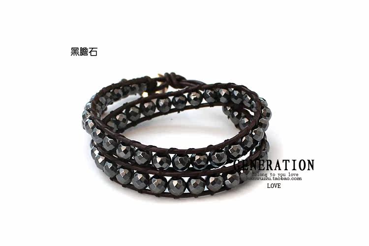 黑胆石,深灰色至黑色,金属光泽,不透明,主要产自巴西南部热带  黑胆石手链