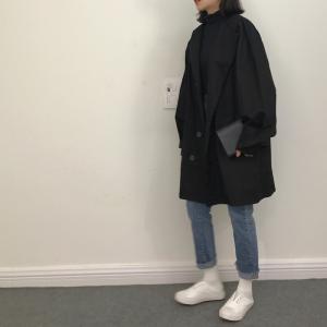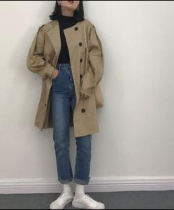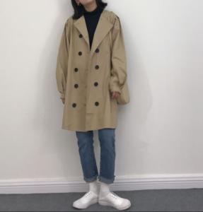 どんな場所にも着ていける無地のノーカラーコートは1枚持っておくと便利なアイテムです。