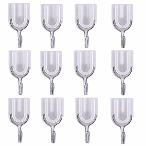 Grekywin 12 pcs Self-adhesive Rotatable Single Hooks Stick-on Hangers Heavy Duty Hook for Kitchen Bathroom Office No Trace