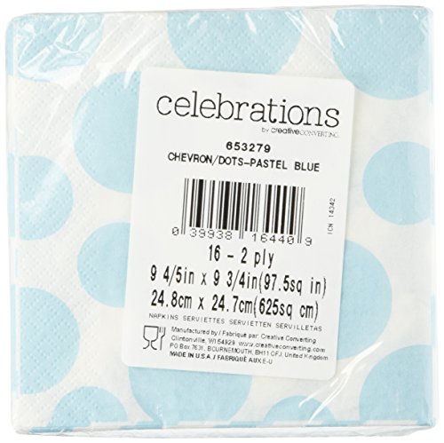 -. Brand : Creative Converting -. Color : blue -. Department : Tableware -. EAN : 0039938164409 -. Feature : One package of 16 Light Blue Chevrons and Dots P.R.Inted 2-Ply Paper 10" Beverage Napkins / Each Napkin has Dots on one side and Chevrons on the other side -. Label : Creative Converting -. Manufacturer : Creative Converting -. Model : 653279 -. MPN : 653279 -. PackageQuantity : 16 -. PartNumber : 653279 -. ProductGroup : Kitchen -. ProductTypeName : KITCHEN -. Publisher : Creative Converting -. Size : Beverage -. Studio : Creative Converting -. Title : Light Blue Chevrons and Dots P.R.Inted Beverage Napkins (16 ct) -. UPC : 039938164409