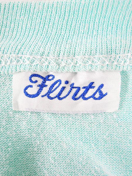 Ladies ブランドFlirts カラーパステルグリーン・ピンク メール便不可 コンディション★★★ 素材コットンだと思われます 表記サイズ記載なし スタッフコメントプリントひび割れあり。 実寸サイズ 着丈 82 cm 身幅 63 cm 袖丈 43 cm (ラグラン袖の為、襟元から袖先までの計測) ※ウエスト・ヒップ以外は平置き採寸