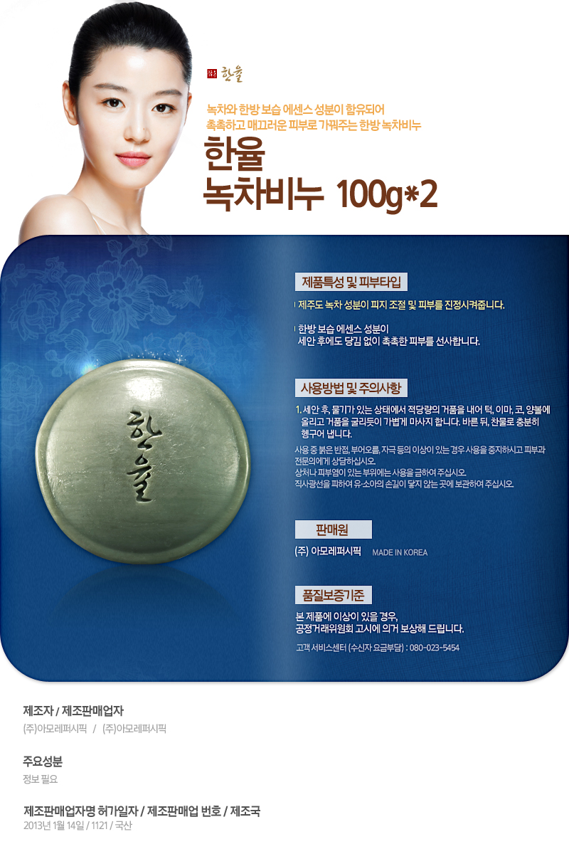 韓律(ハンユル)緑茶石鹸100gX2