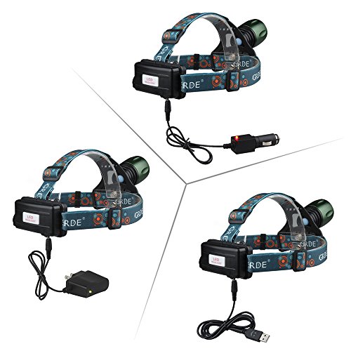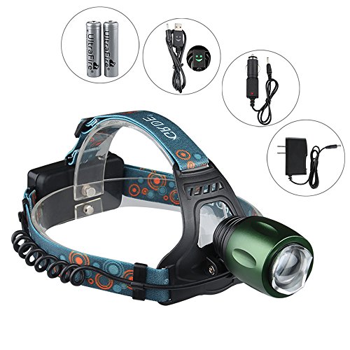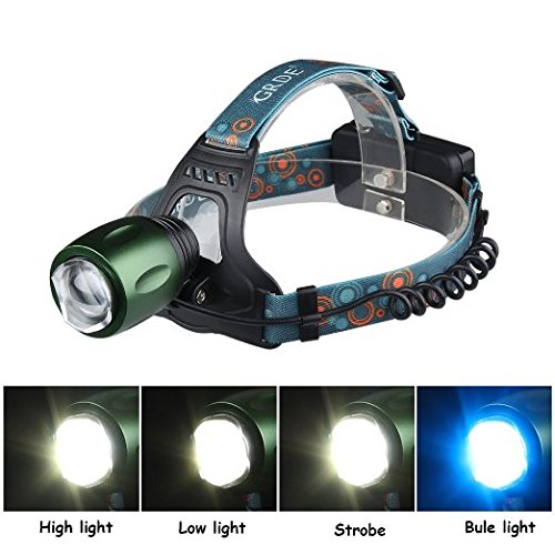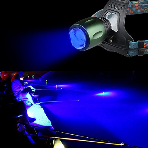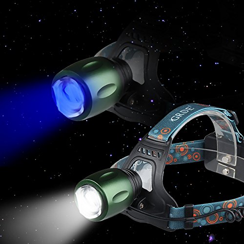 - Feature : 1.Blue +White two Beads Dual Light Source,Perfect Suitable for Fishing Camping Hiking etc / 2.Zoomable,Hands-free ,Adjustable , Rechargeable, Waterproof ,Durable Aluminum alloy casing. / 3.Switch Mode:High/Low/Strobe/Blue Light ,can set as your enjoy / 4.Powered by 2pcs rechargeable 18650 batteries, wall charger and special designed USB cable included. / 5.Green light on the back of pack, provides locational guidance for hiking with folks behind you.