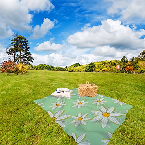 Extra Large Picnic Blanket & Play Mat with Waterproof & Machine Washable Backing and Soft Fleece (Daisy)