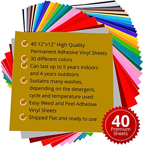 Permanent Adhesive Backed Vinyl Sheets - PrimeCuts - 40 SHEETS 12" x 12" - 40 Assorted Color Sheets for Cricut, Silhouette Cameo, and Other Craft Cutters